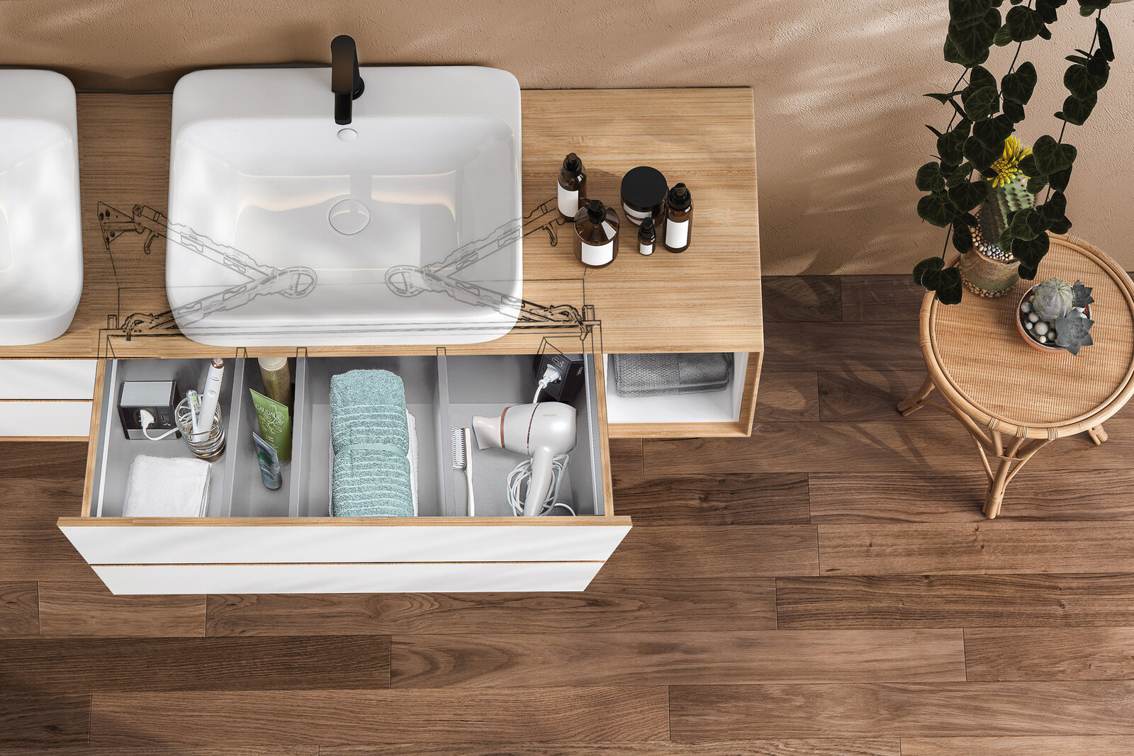 To omogoča neposredno vgradnjo vtičnic ali polnilnih priključkov v predale, medtem ko ostane delovna površina prosta. Možnosti uporabe so številne: v kuhinjah lahko mešalniki ali polnilniki ostanejo shranjeni v predalu, v delavnicah pa se lahko vgradijo polnilne postaje za baterijska orodja. Ne glede na to, ali gre za električni kabel, HDMI- ali LAN-povezave – Wing zagotavlja varno povezavo in tako širi možnosti za oblikovanje za vse, ki oblikujejo in izdelujejo pohištvo.