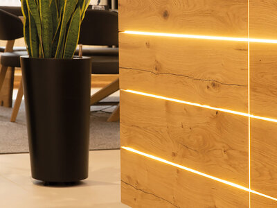 S silikonskim profilom FlipLens za le tri milimetrov širok LED-trak Siro LED Wire, lahko popolnoma zatesnite robove utora in izbirate med dvema kotoma osvetlitve – prozornim ali opalnim lomom osvetlitve. Naši prodajni svetovalci vam bodo z veseljem svetovali.