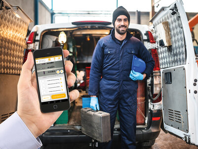 Ko so v montažni kombi nameščene etikete, lahko stranka s svojim pametnim telefonom uporablja aplikacijo »Schachermayer Scan« in želen izdelek skenira kar v kombiju. Količine izdelka, ki so zapisane na etiketi, se prenesejo v naročilo, vendar jih lahko stranka kadar koli s svojim pametnim telefonom spremeni. S telefonom lahko skenira tudi črtno kodo EAN. Skenirani izdelki se prenesejo neposredno v košarico na partner portalu in se lahko takoj naročijo.