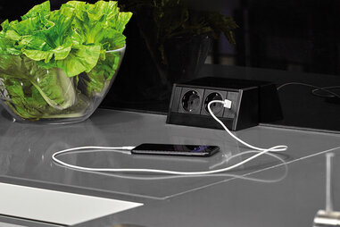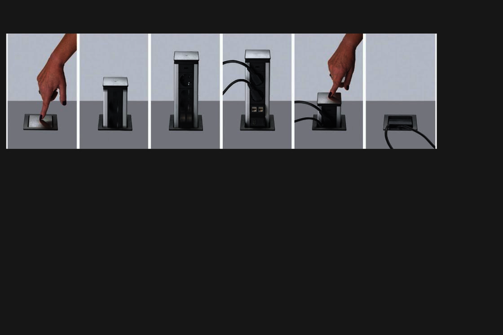 Zadostuje pritisk na pokrov in nova generacija Port Push, se v celoti in samodejno dvigne iz pohištva. S potiskom navzdol, se ponovno tiho potopi na svoj prvotni položaj pod pohištvo. Preverjeni nagib