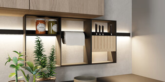 Svetloba obrnjena navzgor deluje kot stenska svetilka za dekorativno osvetlitev, medtem, ko svetloba obrnjena navzdol zagotavlja ustrezno osvetlitev s funkcionalno svetlobo za delovne površine. Tako z