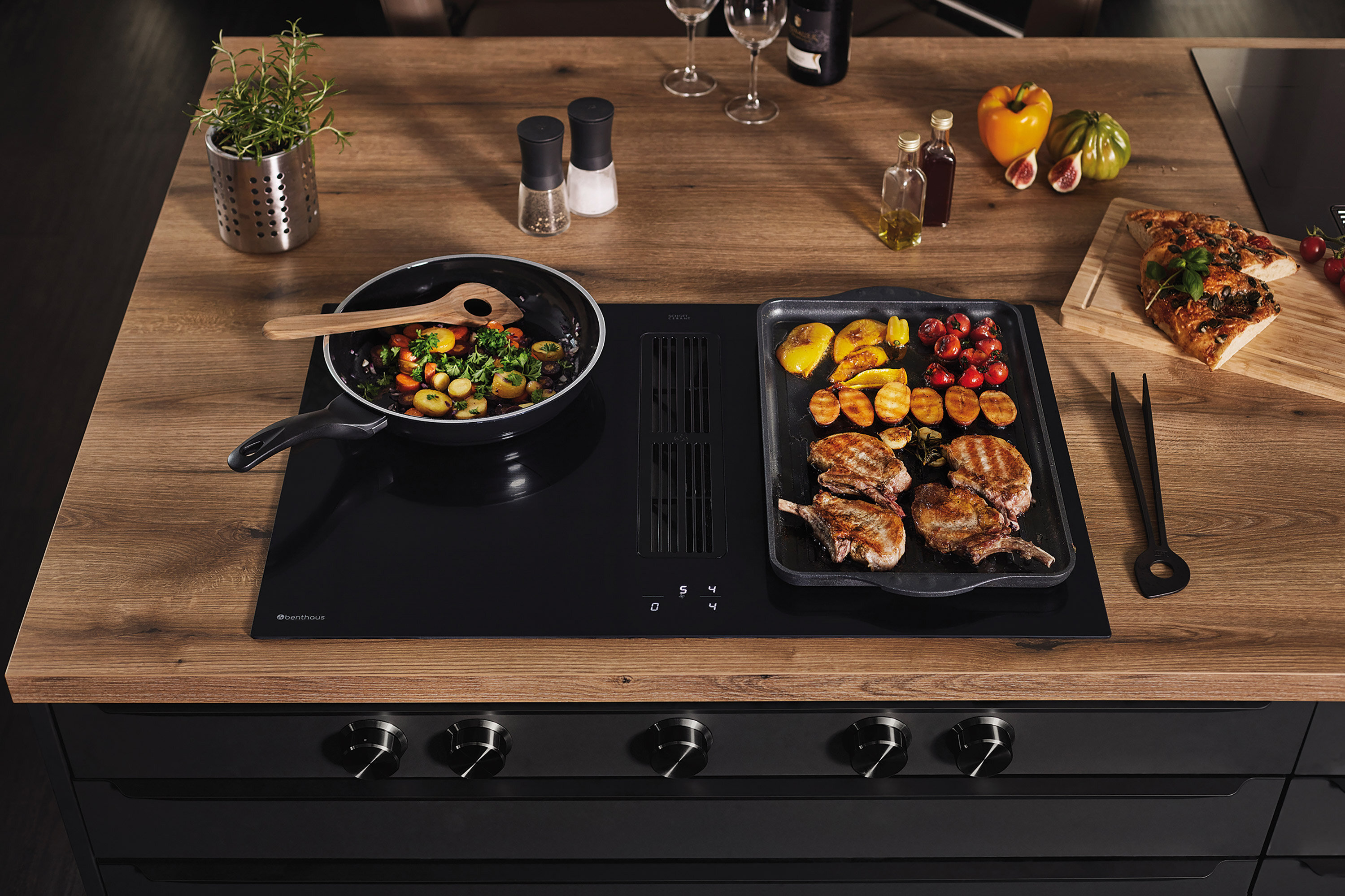 Benthaus Benthaus navdušuje s svojo elegantno obliko in minimalističnim videzom. Mat steklena površina indukcijskih kuhalnih plošč v kombinaciji z elegantno vgrajeno napo je nekaj posebnega. Visoko ka